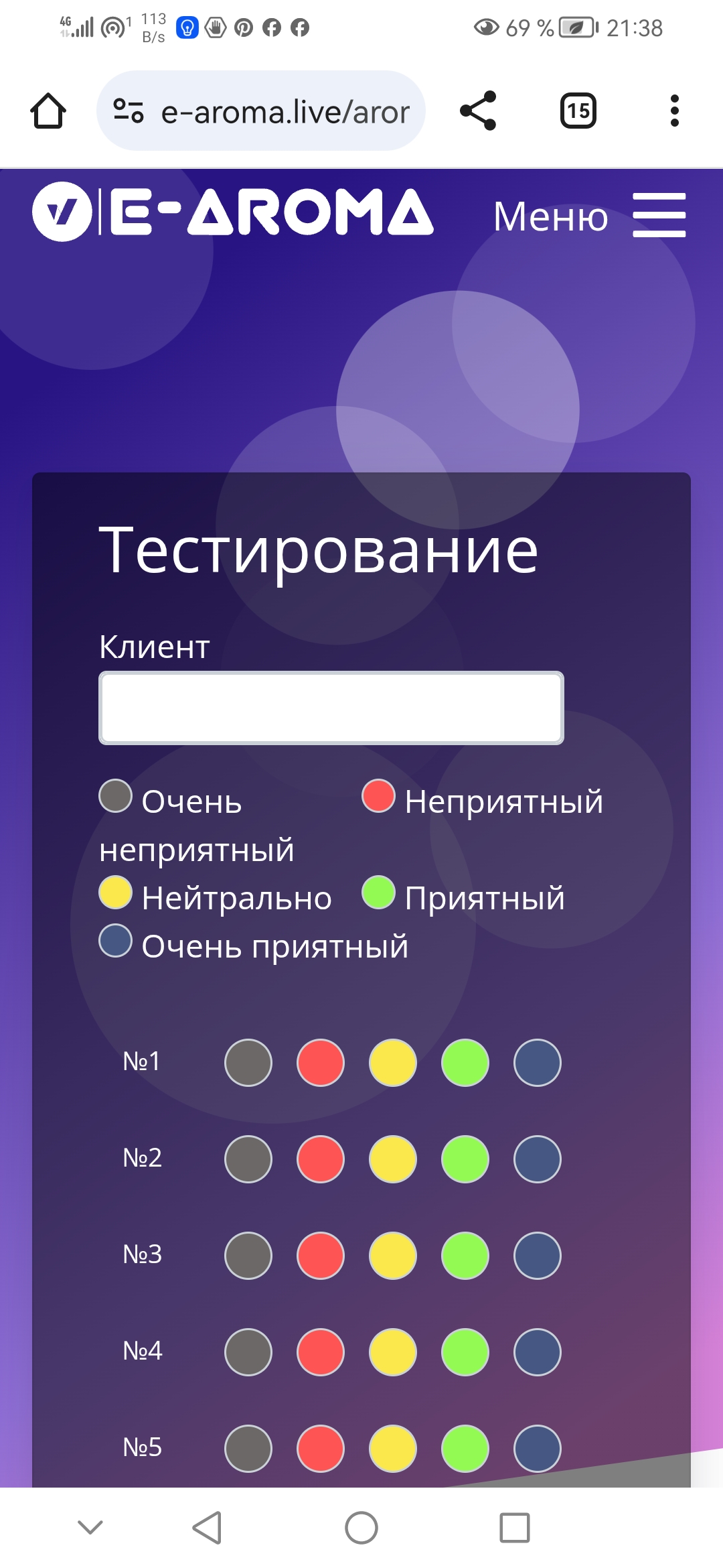 L'application permet de tester en ligne l'état de santé actuel avec la possibilité de reconstruire les analyses de base basées sur les réponses olfactives aux odeurs d'huiles essentielles 100 % naturelles.